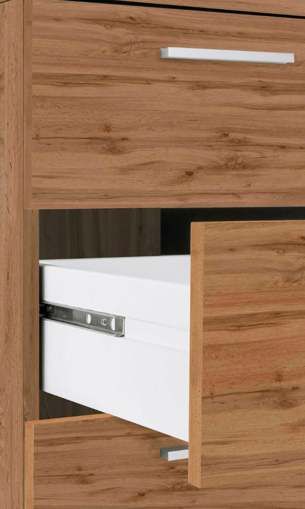 Corner structure with main storage surface and drawer unit with 3 sliding drawers