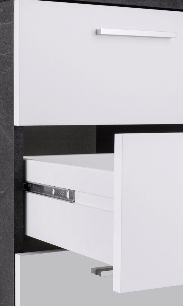 The desk also has an innovative design that translates to a drawer unit consisting of 3 capacious sliding drawers, in which to store office documents and tools and 25 mm thick shelves, providing a generously sized work surface. Owing to its generous size, it can house 2 chairs.