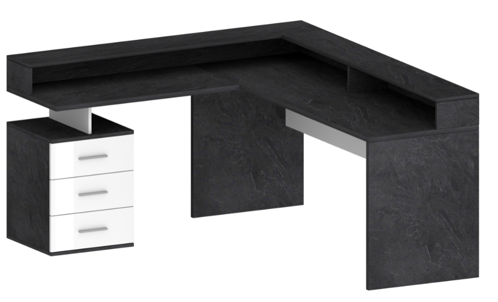 Desk dimensions: 180/160x60x75 cm (width, length, height)